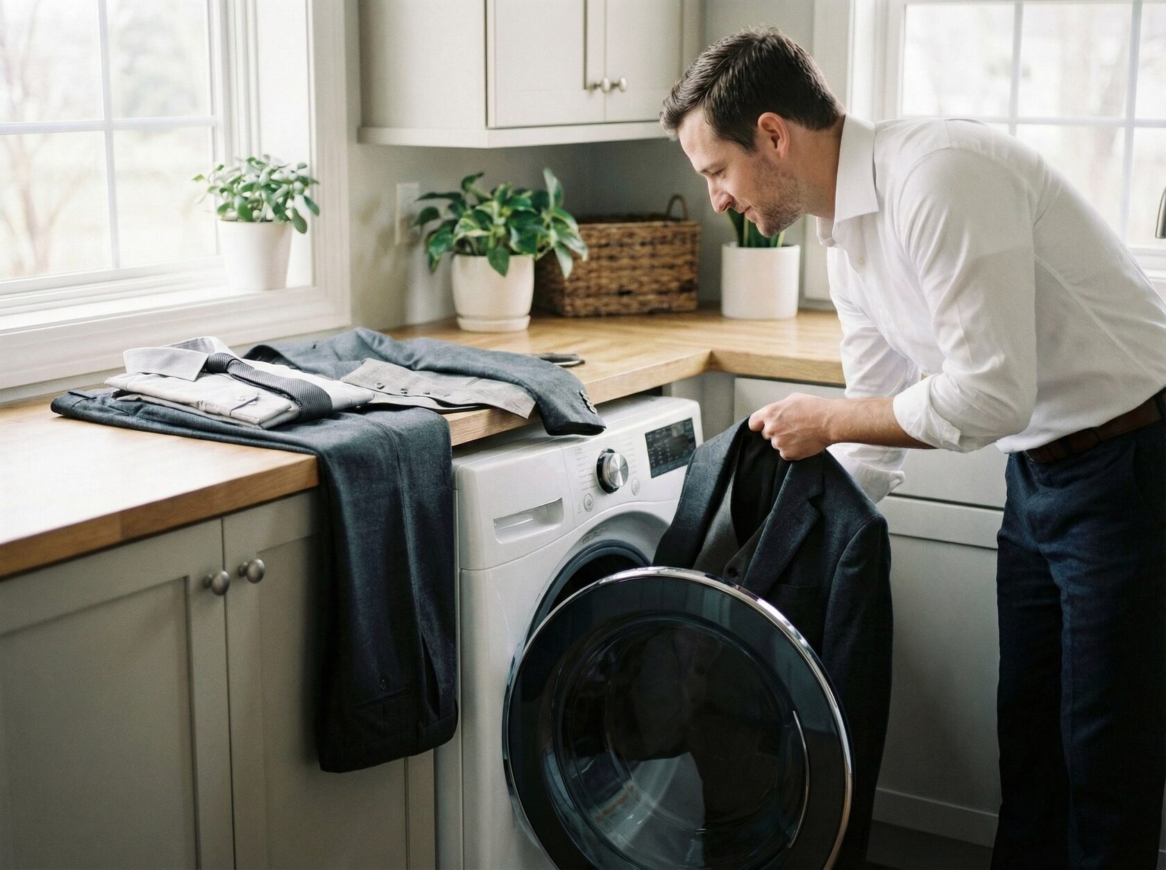 Иногда домашняя стирка — вполне рабочий вариант, особенно если вы носите костюм ежедневно, например, на работу.